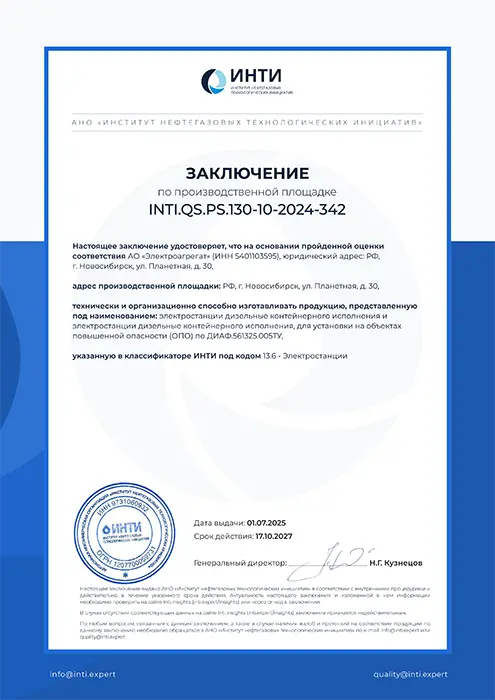 ЗАКЛЮЧЕНИЕ ИНТИ по производственной площадке АО "Электроагрегат"